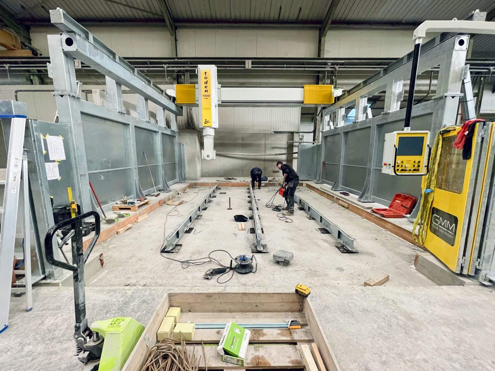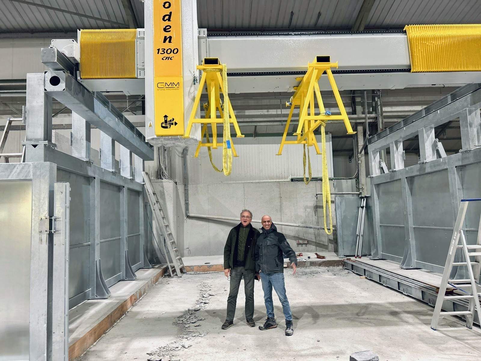 Nous vous en parlions dans cet article : après l’installation du monofil PELLEGRINI pour le sciage de blocains au printemps 2024, la modernisation de notre atelier de taille de pierre se poursuit avec l’arrivée de deux nouvelles machines conçues par des constructeurs italiens de renom.