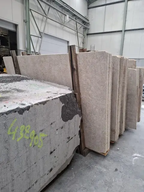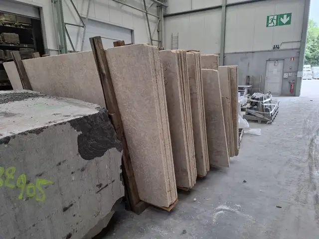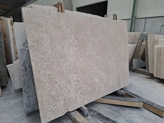 Nos tranches de travertin turc présentent une belle variété de teintes beiges et dorées, traversées de veinages naturels uniques. Disponibles à passe1 et à contre-passe2, en 2 et 3 cm d’épaisseur, et dans différentes finitions (adouci et poli), elles offrent une base idéale pour tous types de créations.